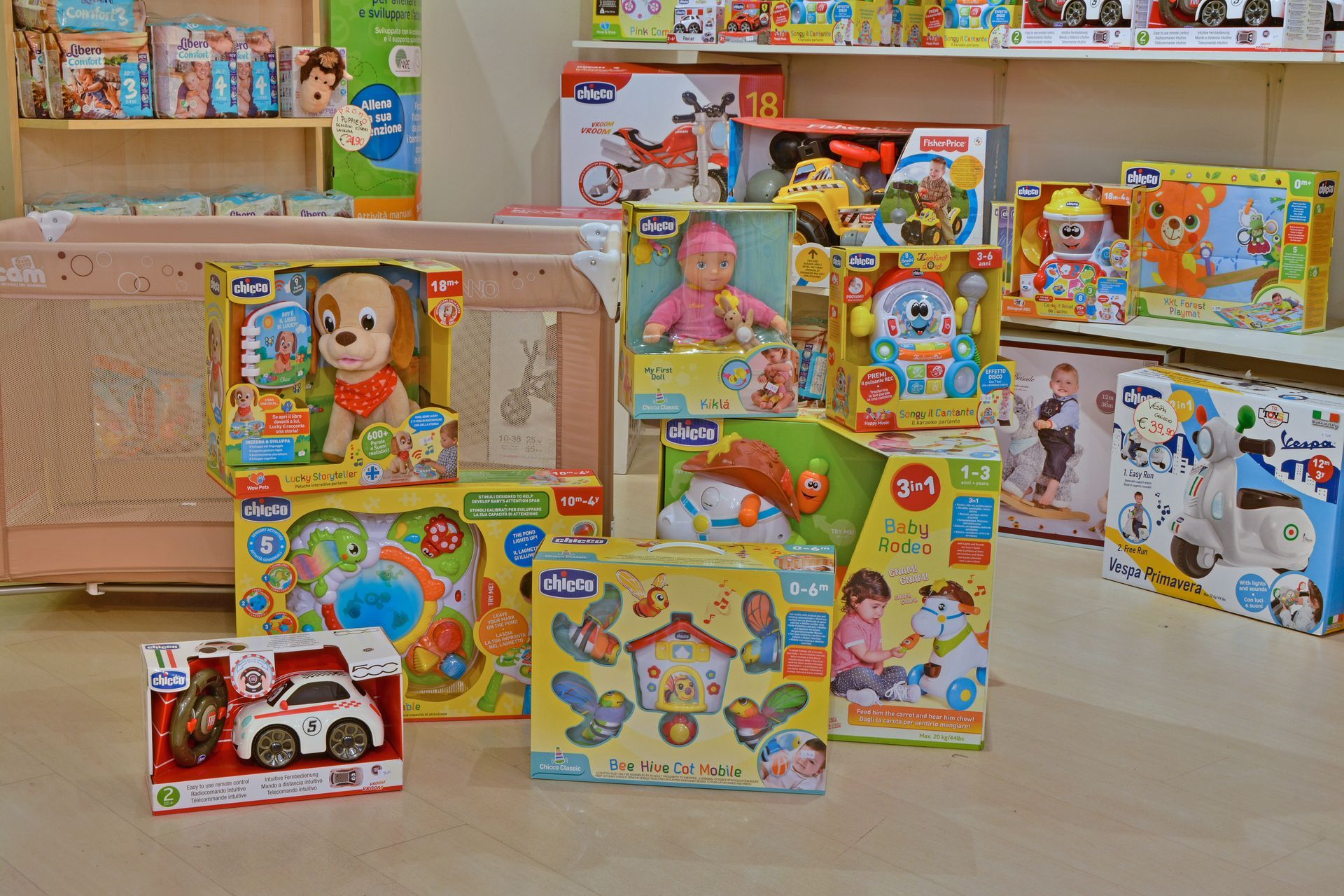 Abbigliamento, scarpine, giocattoli, passeggini, seggioloni, carrozzelle, box, lettini in legno, poltroncine auto, sistemi di sicurezza, abbigliamento e corsetteria pre-maman, alimentazione e dietetica neonati, accessori per la pappa e la cosmesi.